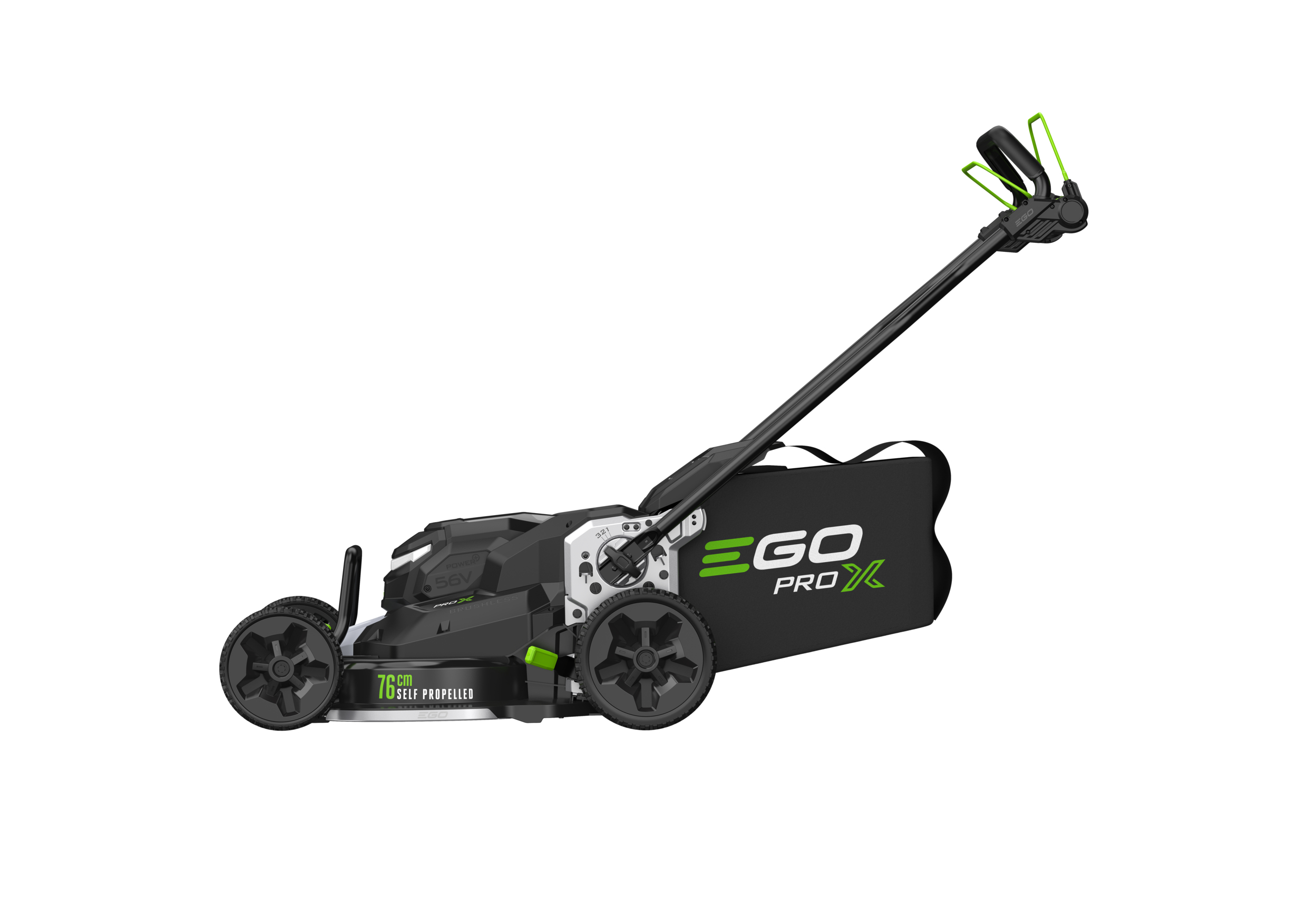 De EGO Pro X 76 cm zelfrijdende grasmaaier biedt EGO’s breedste maaibreedte voor een duwmodel. Krachtig genoeg om klussen aan te pakken die normaal door zitmaaiers worden gedaan, maar met de wendbaarheid en het gemak van een loopmaaier – ideaal voor professionele hoveniers die grote gazons onderhouden.Het hart van de machine is een 76 cm dubbel mesmaaidek aangedreven door Peak Power™-technologie, waarbij twee ARC Lithium™-accu’s samenwerken voor maximale kracht. De automatische variabele messnelheid en de zelfrijdende aandrijving passen zich aan jouw tempo aan, wat langere maaisessies efficiënter en minder vermoeiend maakt.Het supersterke PC/PBT-composiet maaidek, versterkt met een metalen frame en bumpers, biedt uitzonderlijke duurzaamheid in combinatie met een praktisch gewicht. Met 47 kg is hij sterk maar toch wendbaar – perfect voor plekken waar zitmaaiers niet kunnen komen.Met 10 maaihoogtes (20–125 mm), drie maaimodi (opvangen, mulchen of zijuitworp met optionele accessoire) en een extra grote 88 L stoffen opvangzak biedt deze maaier veelzijdigheid voor elke klus. En als het werk klaar is, maakt de opvouwbare Pro X-duwboom opslag en transport eenvoudig.Slimme functies zoals IoT-connectiviteit en LED-koplampen laten je langer, slimmer en efficiënter werken. De 76 cm Pro X is niet alleen EGO’s grootste duwmaaier – het is de nieuwe norm voor professionele loopmaaiers.