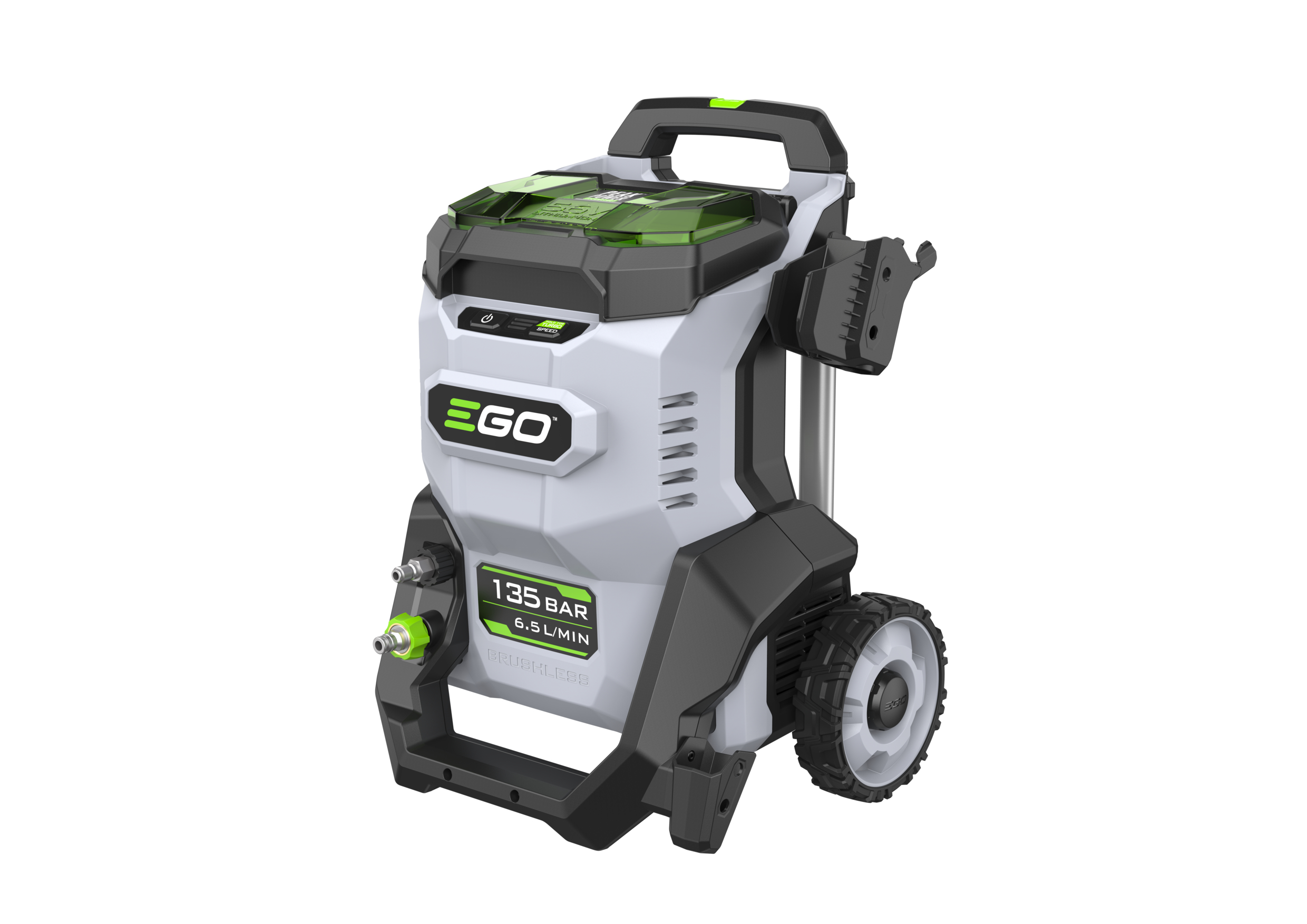 De nieuwe HPW2000E hogedrukreiniger van EGO combineert superieure reinigingskracht met een ongeëvenaarde acculooptijden. Met de vermogensregeling op afstand en een selectie van mondstukken hebt je alles in de hand om uiteenlopende schoonmaaktaken snel en doeltreffend uit te voeren.